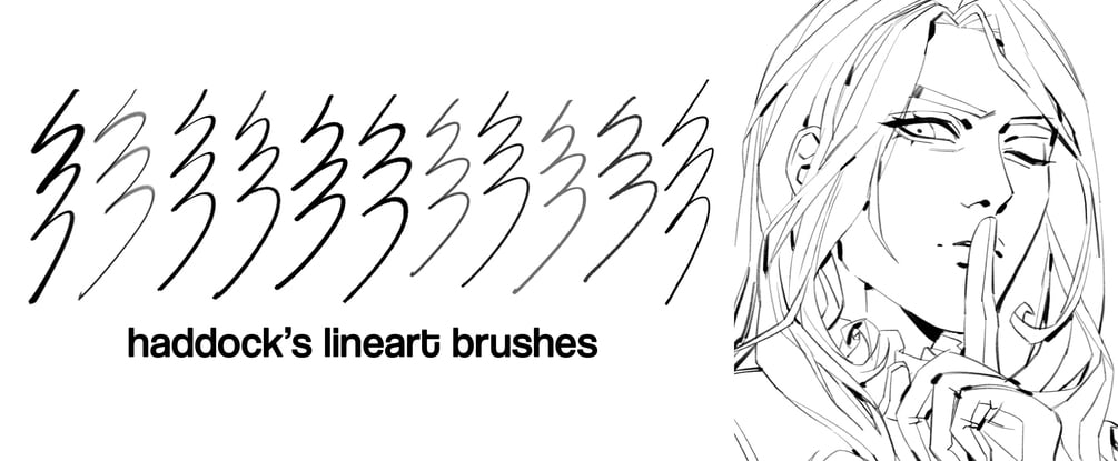 a collection of 11 Procreate lineart brushes with subtly different textures, pressures, and styles.